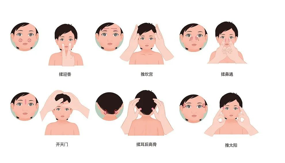 按摩百会穴(位于头顶正中线与两耳尖连线的交叉处)、三焦经、胆经区域。